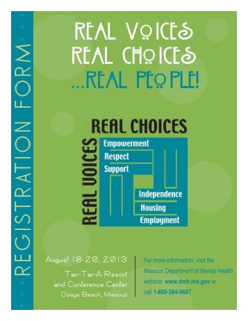 Missouri Department of Mental Health..800-364-9687 PO Box 687, Jefferson City, MO 65101 Website: http://www.dmh.missouri.gov Missouri Mental Health Counselors Association ..800-341-3363 905 B Eastland Plaza, PMB #101, Jefferson City, MO 65101 ... Document Viewer